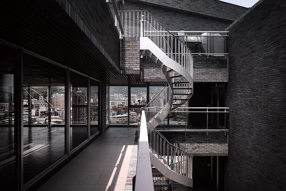 本案為減少對都市之壓迫感,因此基地在臨石牌路及西安街之交叉口,分別退縮騎樓地建築,以形成一開闊性的街角空間,因此而產生喬木可生長的空間,進而形構都市虛體空間,並創造綠意的入口意象,並提供友善的都市人行空間。