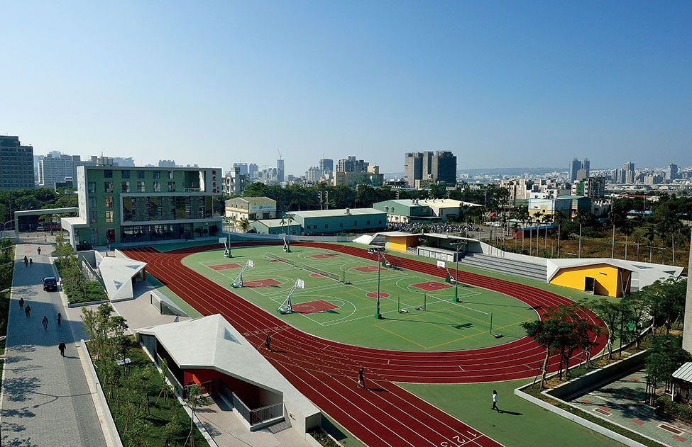 配置上希望透過南校區的規劃重新建構校園的空間結構;將校門由西側巷道移至南側福星北路,校園形成三個層次分明而合理的使用分區(運動區、教學區、生活區),空間組織形成較明確的主從關係,校門空間也呈現了優質學習環境的親切意象。運動場轉為南北向以符合實際使用要求與日照條件,司令台與休息坐階也配合日照條件設於運動場西側。運動場向西靠,留設出東側空間作為校園進出主軸大道。運動場下方空間延主軸大道設置出入口,以銜接校園活動,地面主要建物為實習旅館,配置於南校門入口西側,利用建築體折板延伸,形成入口門戶空間,一方面形塑校門入口意象,一方面作為學校與都市的銜接介面。同時,藉由校園主軸大道讓圖書館大樓形成地標端景。