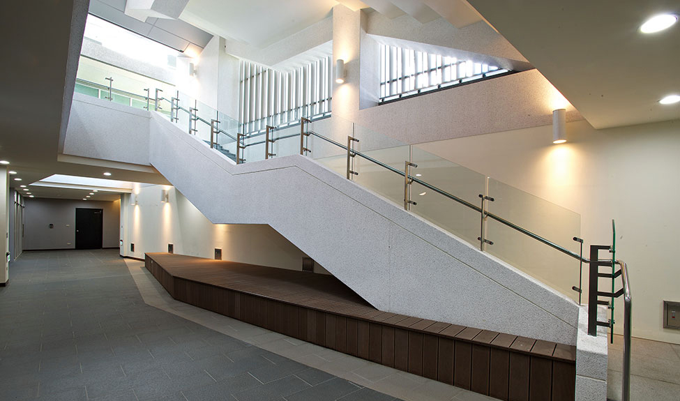 F、G棟學生宿舍採整體規劃,分期開發方式,其中二期的G棟學生宿舍為包含中央公共服務空間的L型量體,與一期F棟宿舍整體圍塑出內聚的合院與多功能戶外廣場。量體上F、G兩棟宿舍為地下一層至地上十層,主要提供雙人之住宿單元;中央公共服務空間則為地下一層至地上三層,除了便利商店,還有學生社團與多功能教室、屋頂花園等服務空間。