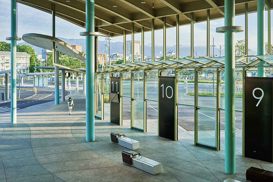 現在的轉運站仍是鐵路高架完成前的過渡設施,它像一個臨時的庇護容器,站在城市發展的縫隙裡。未來正式轉運站將位於陽明路北側,理想中將跨過林森路,與新的宜蘭火車站連成一體。因此,從規劃之初就將「過渡」與「轉型」視為並存的狀態。當那天到來時,這座容器不必消失,而是成為有遮蔭的廣場,銜接城市的綠帶和滯洪公園,成為城市中可被反覆使用的開放場域。